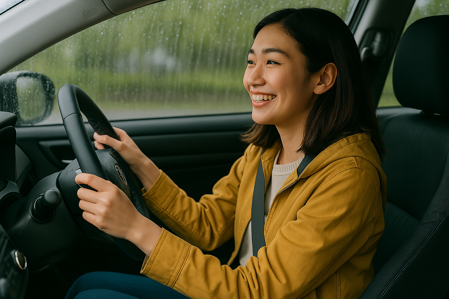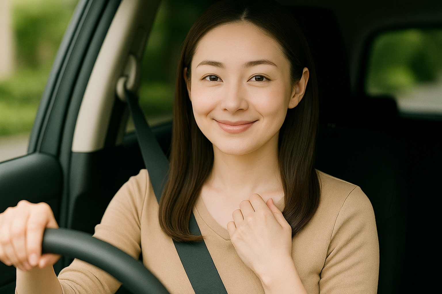 運転に自信を持つ女性ドライバーの笑顔